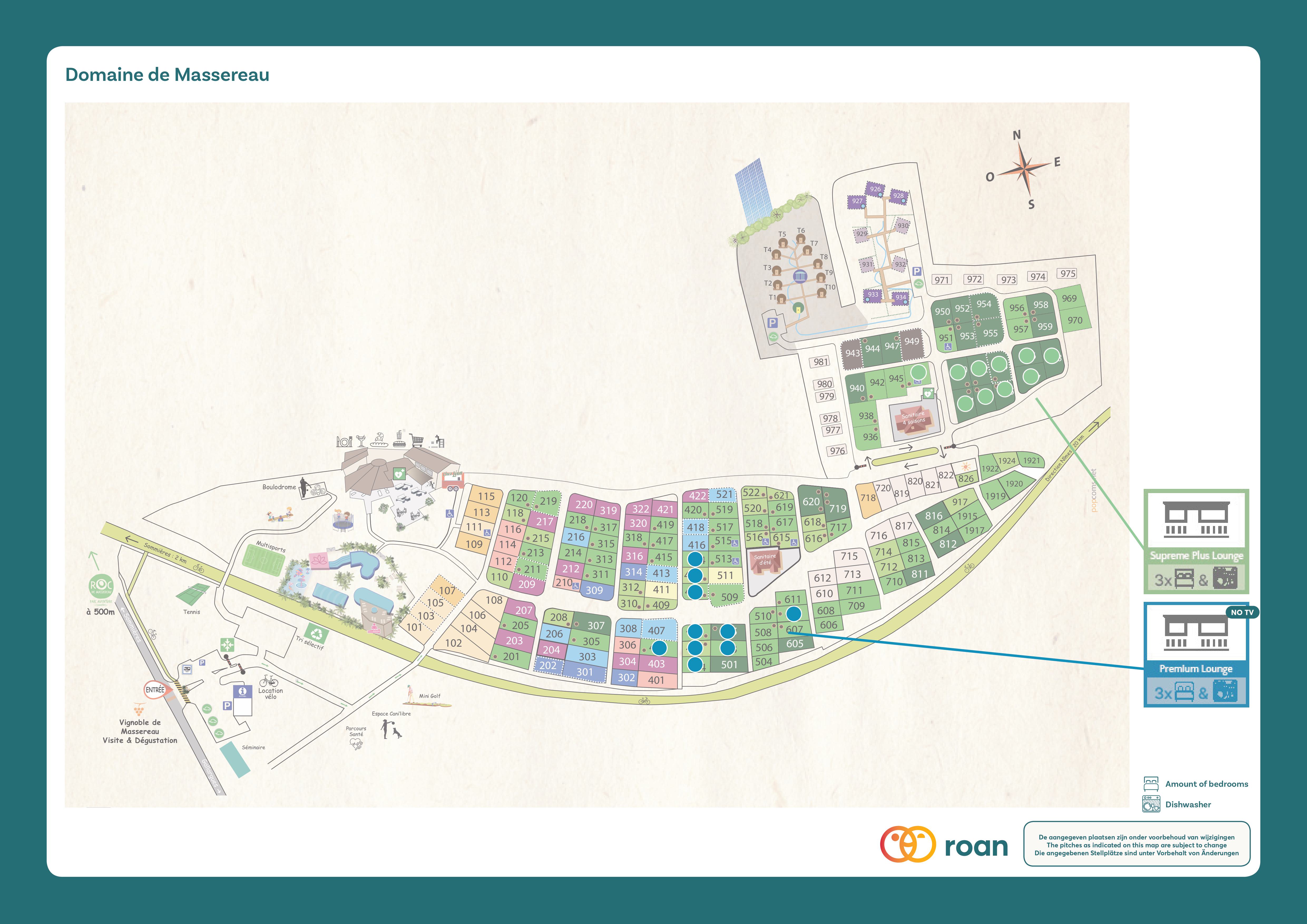 Élu camping le plus respectueux de l'environnement en Europe, le camping Le Domaine de Massereau a également reçu plusieurs prix ADAC. Le domaine de 13 hectares est entièrement autonome en électricité, grâce à un impressionnant parc photovoltaïque de 1 200 m² de panneaux solaires. Il a également investi dans un réservoir de collecte des eaux de pluie, équipé d'un système d'irrigation sélectif au goutte-à-goutte, afin d'utiliser les ressources en eau de la manière la plus efficace possible. En outre, le camping dispose de bornes de recharge pour les véhicules électriques, encourageant ainsi la mobilité durable.