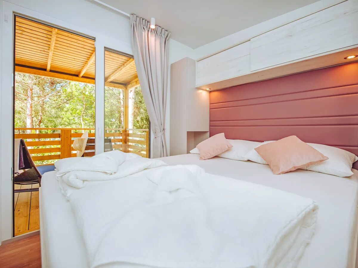 Le mobil-home Comfort Plus Lounge dispose de 3 chambres : une avec un lit double et les chambres des enfants ont chacune 2 lits simples. Le canapé du salon peut également se transformer en lit (1,90 x 0,80). La chambre principale est équipée d'un climatiseur supplémentaire. Un support de lit est standard, que vous pouvez glisser sous le matelas pour empêcher votre enfant de rouler hors du lit. Il y a des moustiquaires dans la chambre des enfants à l'arrière du mobil-home.