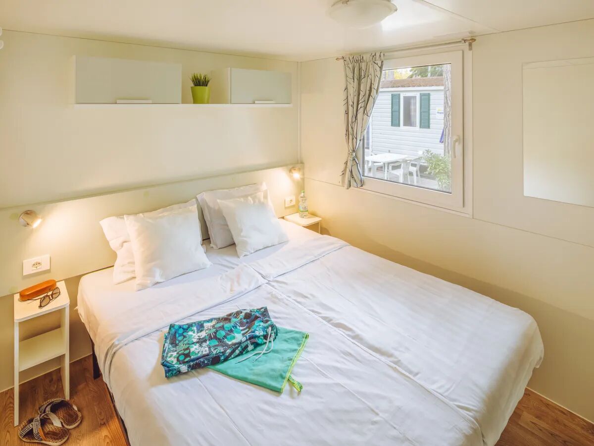 Le mobil-home Premium a une cuisine conviviale et un salon spacieux et climatisés. Le canapé d’angle se convertit en couchage pour une personne. Le plafond est incliné ce qui est idéal pour les personnes de grande taille. La cuisine est équipée d’un lave-vaisselle, d’un grand réfrigérateur avec compartiment congélateur, d’un four à micro-ondes, d’une cuisinière à gaz avec 4 foyers et d’une cafetière. La salle de bain est munie d’une cabine de douche et d’un lavabo avec rangement. Les toilettes sont séparées.