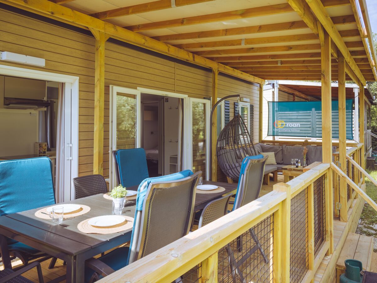 La veranda extra large di 24 m2 ha un salotto e una zona pranzo. La veranda è completamente coperta e si può cenare al tavolo extra lungo sotto il tetto. Il divano del salone è dall'altra parte della veranda. Per il relax, ci sono 2 lettini e, per un comfort ancora maggiore, quest'anno abbiamo aggiunto 2 sedie reclinabili, che potrete utilizzare nella casa mobile stessa o portare in piscina e in spiaggia. Sulla veranda troverete anche una bella sedia appesa e un lussuosa griglia XL. Sulla pagina del campeggio, potete leggere quale piastra barbecue/griglia gratuita ha il vostro alloggio. Infine, vi togliamo tutto il lavoro: la pulizia finale è ovviamente inclusa in questa casa mobile di lusso.